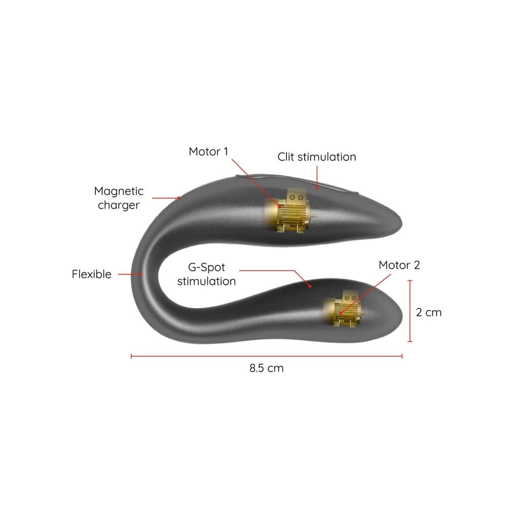S tímto vibrátorem si můžete nejen vybrat mezi přednastavenými kombinacemi vibrací a intenzity, ale můžete také sdílet inovativní ovládání založené na aplikaci. Stačí si do svého zařízení Android nebo iOS stáhnout bezplatnou aplikaci ONINDER a připojit svůj chytrý telefon nebo tablet.